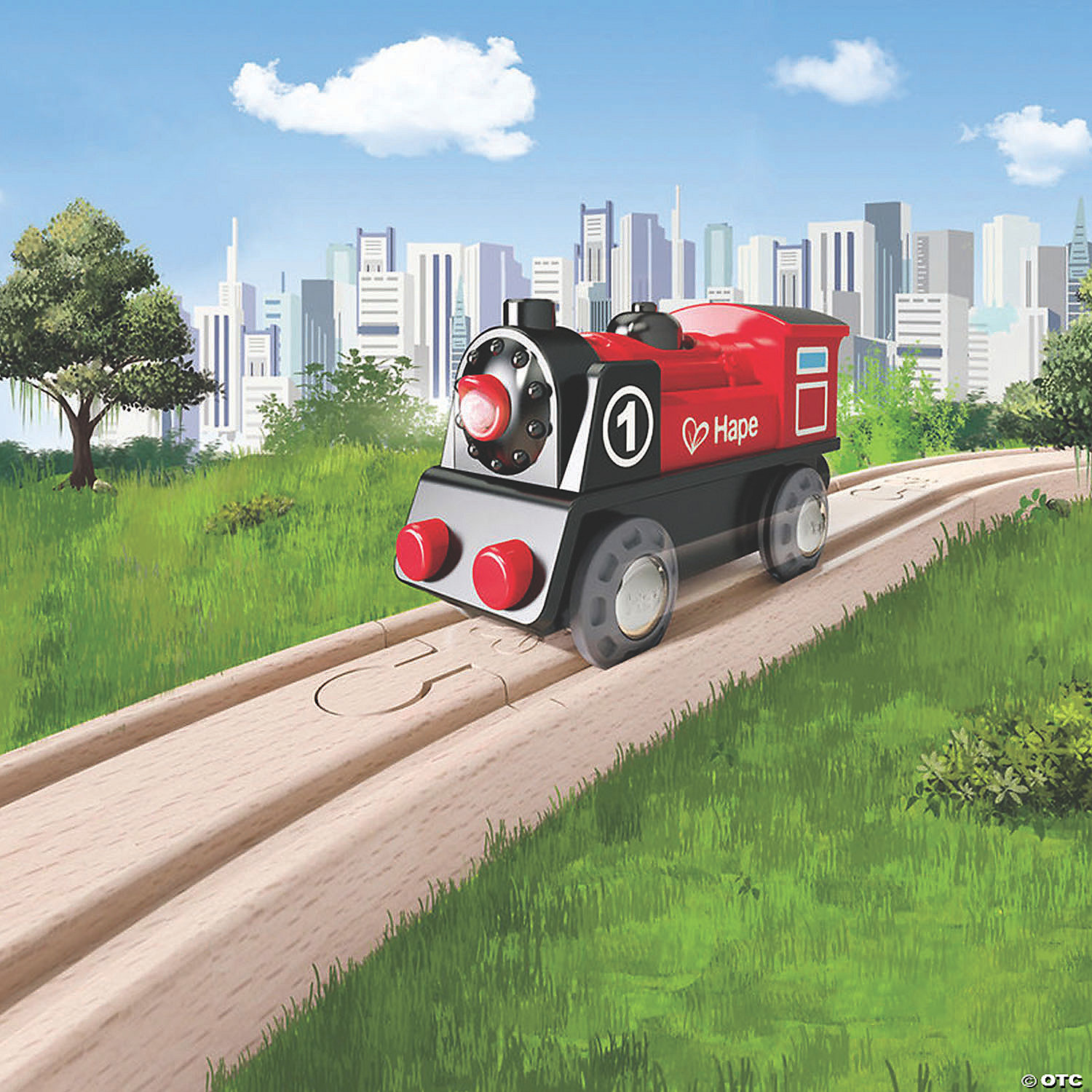 This Battery Powered Train Engine chugs along with a lamp to light the way. With the touch of a button, you can even send the engine in reverse! Tows traincars from the Railway Bucket Builder Set behind it, and leads the way through a tiny town and over a mountain pass. • Battery Powered Engine• Encourages creative play• Uses two AAA batteries, not included