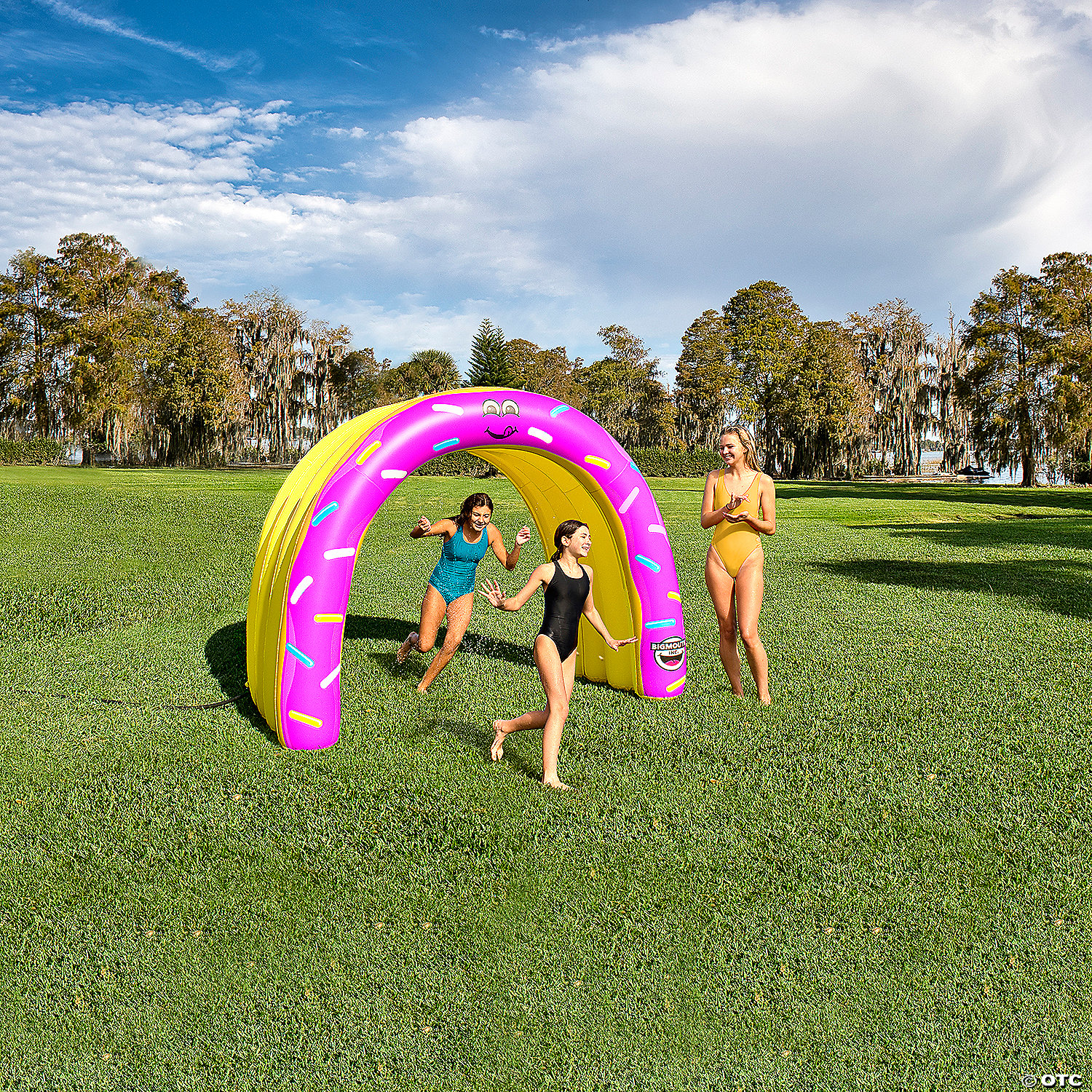MMM… a mouthwatering Donut Tunnel lawn Sprinkler. The BigMouth Inc. Giant Inflatable Donut Tunnel Yard Sprinkler will take your summer game to the next level. Standing 6 feet tall, the kids will love running circles through the colorful arches and water rains down, keeping them cool. It’s the missing piece to that epic birthday, pool party, BBQ or family reunion you’ve been planning (or dreading). This extra-large inflatable yard sprinkler is super simple to set up. It’s easy to inflate and works with a standard garden hose so all you have to do it fill it up with air, stake it down, twist on the hose and run happily through the rainbow rain! The Bigmouth Inc. Giant Inflatable Donut Tunnel is for ages 3 and up. It comes complete with lawn stakes to requires no tools for assembly. Go nuts with mouthwatering fun – Giant Donut Sprinkler The BigMouth Giant Donut Sprinkler is a Tunnel sprinkler, designed to look like the tasty treat!!To use, simply unbox the Donut Tunnel, inflate using a pump (not included), connect to a standard hose then turn on the water. Recommended for Ages 3+ Special Shipping Information: This item ships separately from other items in your order. This item cannot ship to a P.O. Box. This item may be subject to additional processing days. ITEM IS NOT ELIGIBLE FOR EXPEDITED SHIPPING