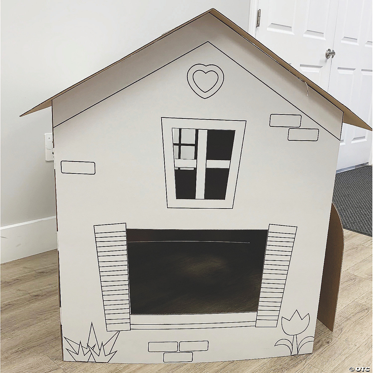 Build up the fun with this large kids craft! This playhouse says “WELCOME” on the door and has cute flowers at the windows and around the base. Use your own markers or crayons to color it in, then assemble it and get ready to play house! Cardboard. 26″ x 34″ x 36″ Assembly required.Special Shipping Information: This item ships separately from other items in your order. This item cannot ship to a P.O. Box. This item may be subject to additional processing days.• ITEM IS NOT ELIGIBLE FOR EXPEDITED SHIPPING.