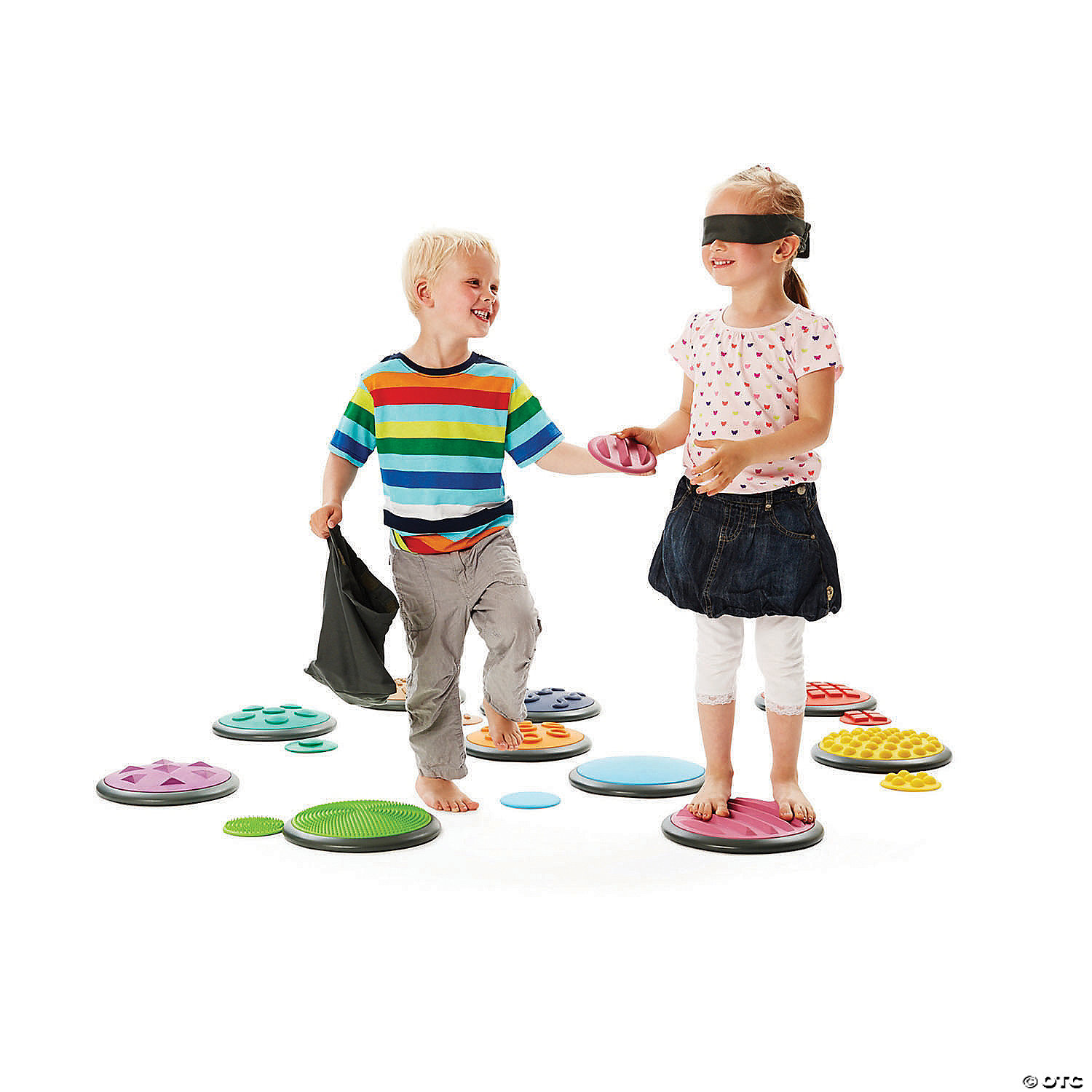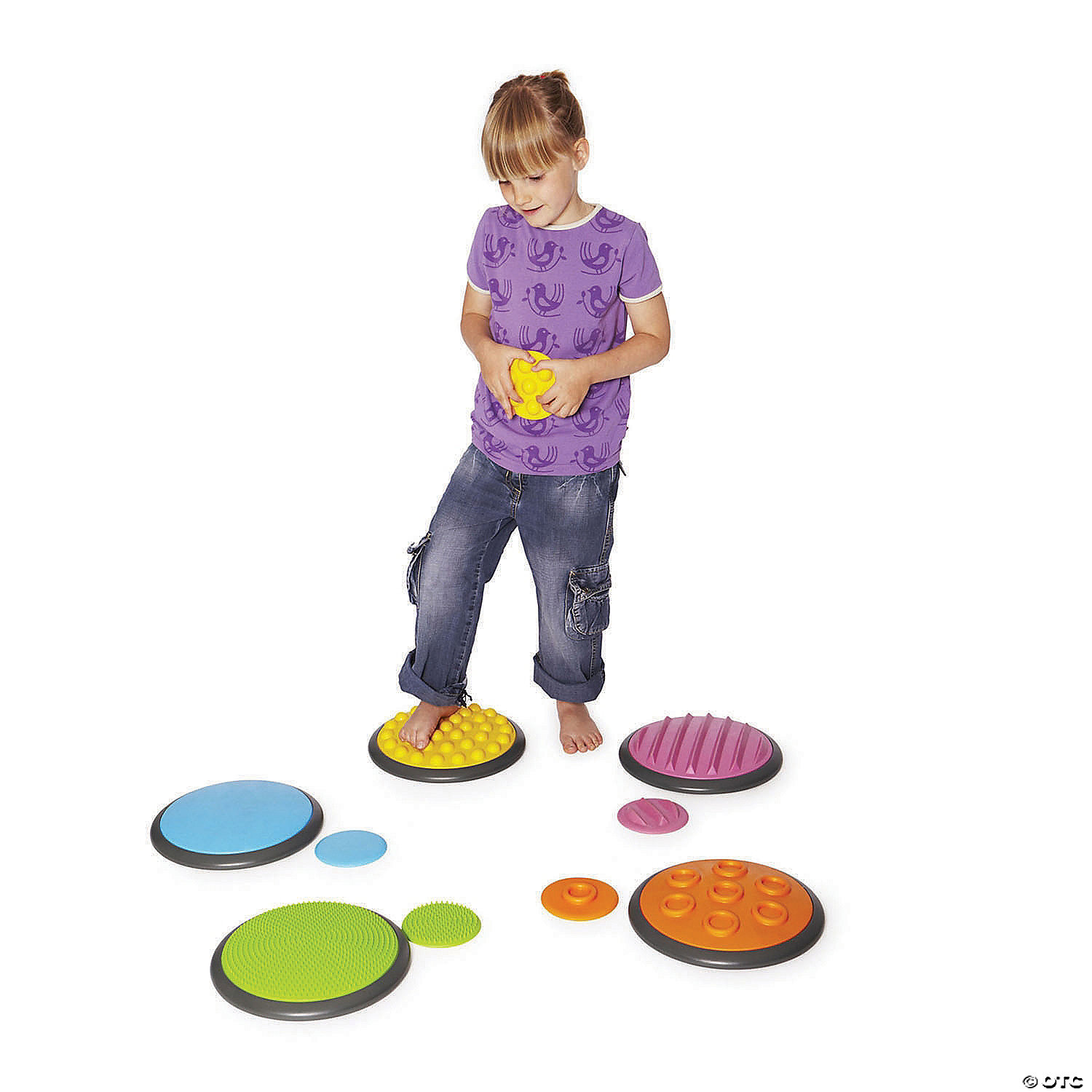 An inviting tactile material that challenges children’s sense of touch on both hands and feet. At the same time, it develops the ability to describe sense impressions verbally. The tactile discs, made of nice-to-touch synthetic rubber, contain different tactile structures, each with its own color. Each of the tactile structures can be found on a large disc for positioning on the floor, as well as on a small disc that the child will be able to hold in his/her hands. In terms of playing, the discs offer innumerable possibilities ranging from a fundamental sensing of the tactile structures to blindfold games based on memory and recognition. The games can be adjusted, so that they fit the child’s age and level of functionality. Discs measure 4.3″ – 10.6″. Weight Capacity: 220.5lb.