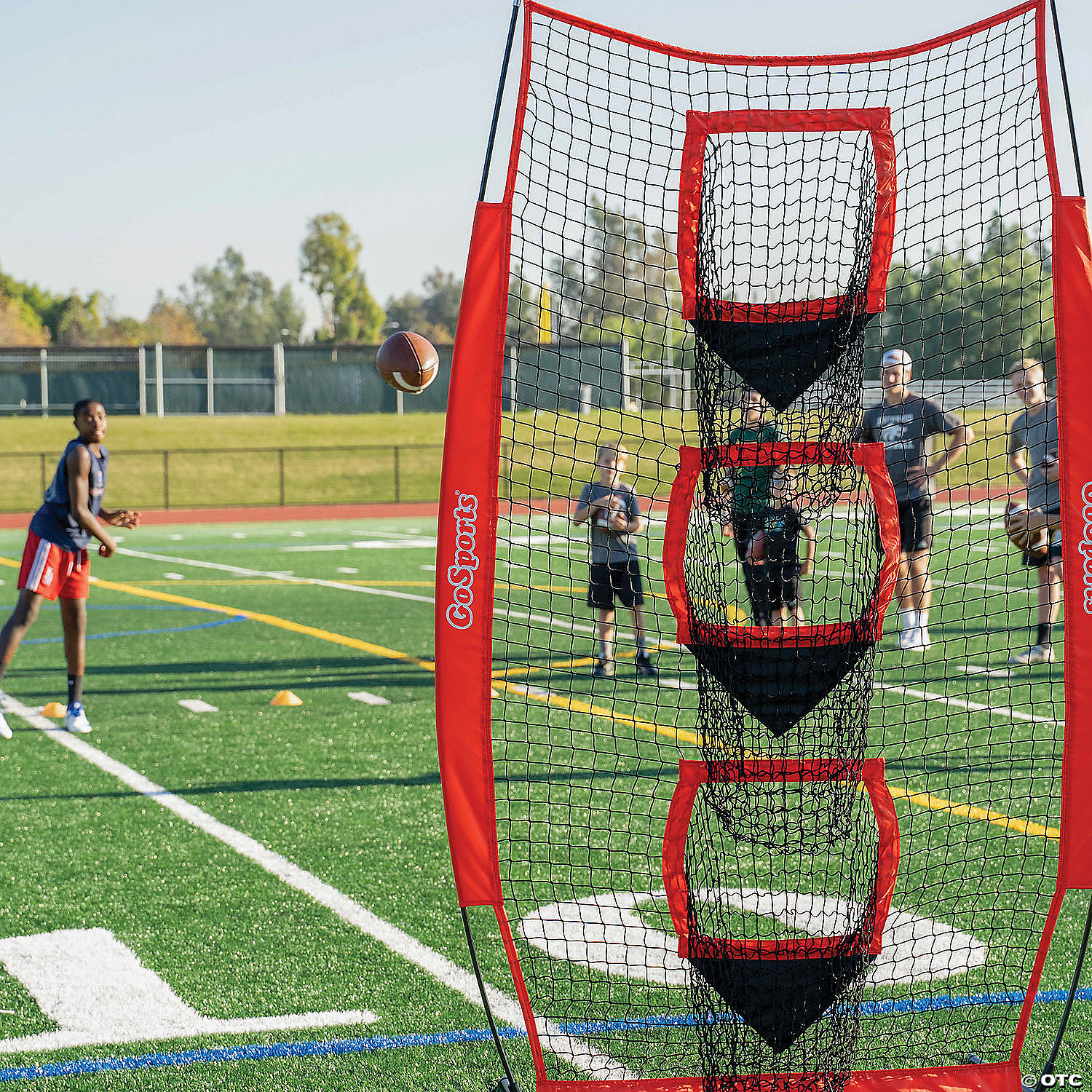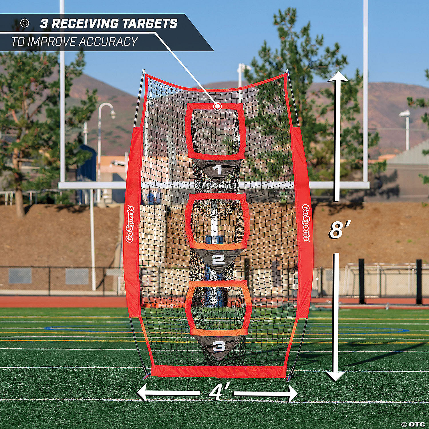 The GoSports 8’x4′ football net was developed to help QB’s of all abilities practice clearing the linemen and passing accuracy on their own. The net provides 3 distinct targets at various heights for improved throwing power and accuracy. The net is constructed from a tubular steel frame with a bow net style netting that can be setup in under 60 seconds. It also includes extended legs and metal Spikes to ensure it will never tip over. This is great for the backyard, on the field or even indoors in a gym. Improve your accuracy today with the GoSports Football Training Net. Special Shipping Information: This item ships separately from other items in your order. This item cannot ship to a P.O. Box. This item may be subject to additional processing days. ITEM IS NOT ELIGIBLE FOR EXPEDITED SHIPPING