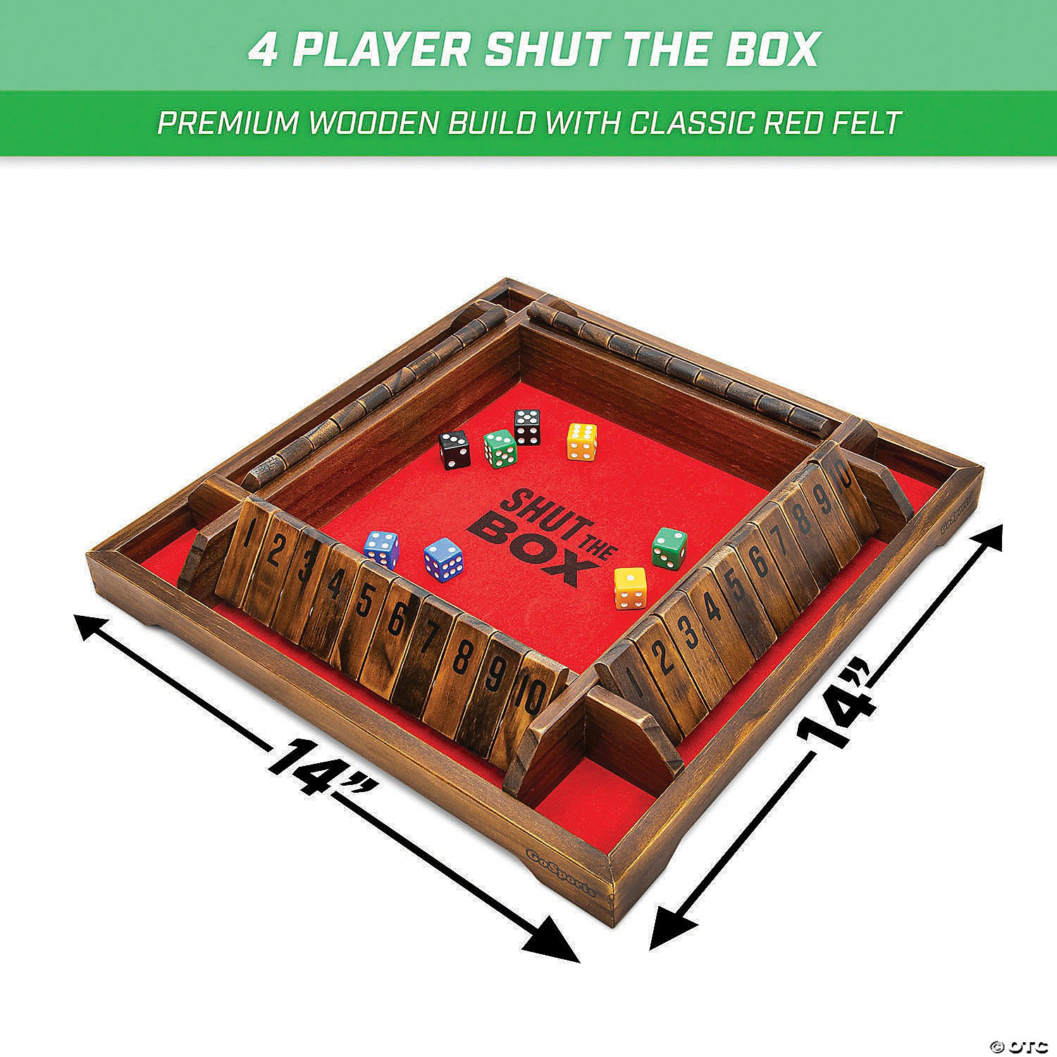 GoSports Shut the Box is inspired by the classic game of numbers in which players alternate rolling their dice and compete to “shut” all of their numbered tiles first! At the start of each game all numbered tiles are flipped up. Each player occupies one row of numbers and alternates rolling their dice in the center, and must flip down one tile or any combination of their numbered tiles to equal the sum of their dice roll. However each tile can only be flipped once, which adds a fun challenge to this exciting game of numbers! Compete with friends and family to see who can Shut the Box first, or add up your scores to determine the winner! Full game rules included. The game board measures 14” x 14” and features premium wooden construction with classic red felt. The complete set includes 1 gameboard, 4 sets of dice and complete game rules. Now compete with friends and family to see who can Shut the Box! Special Shipping Information: This item ships separately from other items in your order. This item cannot ship to a P.O. Box. This item may be subject to additional processing days. ITEM IS NOT ELIGIBLE FOR EXPEDITED SHIPPING You may initiate a return for unused items within 30 days, if the items are in original packaging with all original materials included with the shipment.