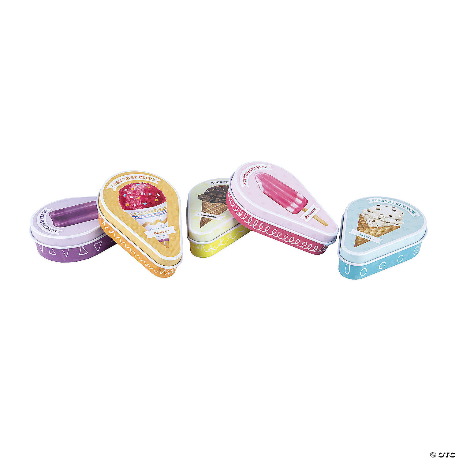 Enjoy sweet scents with these adorably designed scratch-and-sniff stickers in a uniquely shaped tin! Each ice cream truck shaped display holds 30 uniquely shaped tins of scratch-and-sniff stickers—6 of each delicious scent: vanilla, strawberry, grape, cherry and chocolate. 20 stickers per tin.• 30 uniquely shaped tins• 20 scented stickers per tin• Scents include vanilla, strawberry, grape, cherry and chocolate