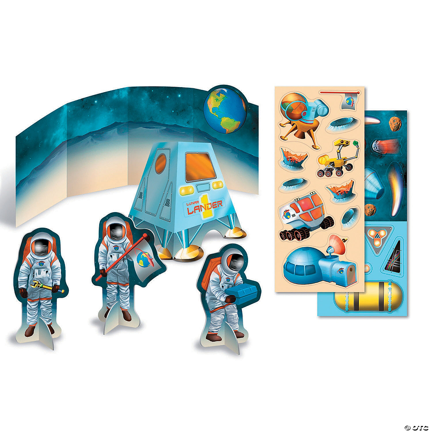 “That’s one small step for man, one giant leap for mankind.” Have your own space adventure with this quick sticker kit. Land on the moon with your lunar landing vehicle and decorate the moon scene with glow-in-the-dark stickers.Families love this item because they can take it in the car, on a plane, into a restaurant, or anywhere you might want an engaging activity that’s easy to start and easy to clean up.INCLUDES: 1 fold-out moon scene, 3 stand-up astronauts, 1 lunar landing vehicle and 2 glow-in-the-dark sticker sheets