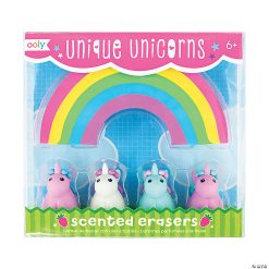 Discover a cuteness overload with Unique Unicorns scented pencil erasers. This set of 5 strawberry scented erasers come with 4 colorful unicorns and one really large rainbow eraser. Now you can erase pencil made mistakes with a the magical scent of sweet strawberries.