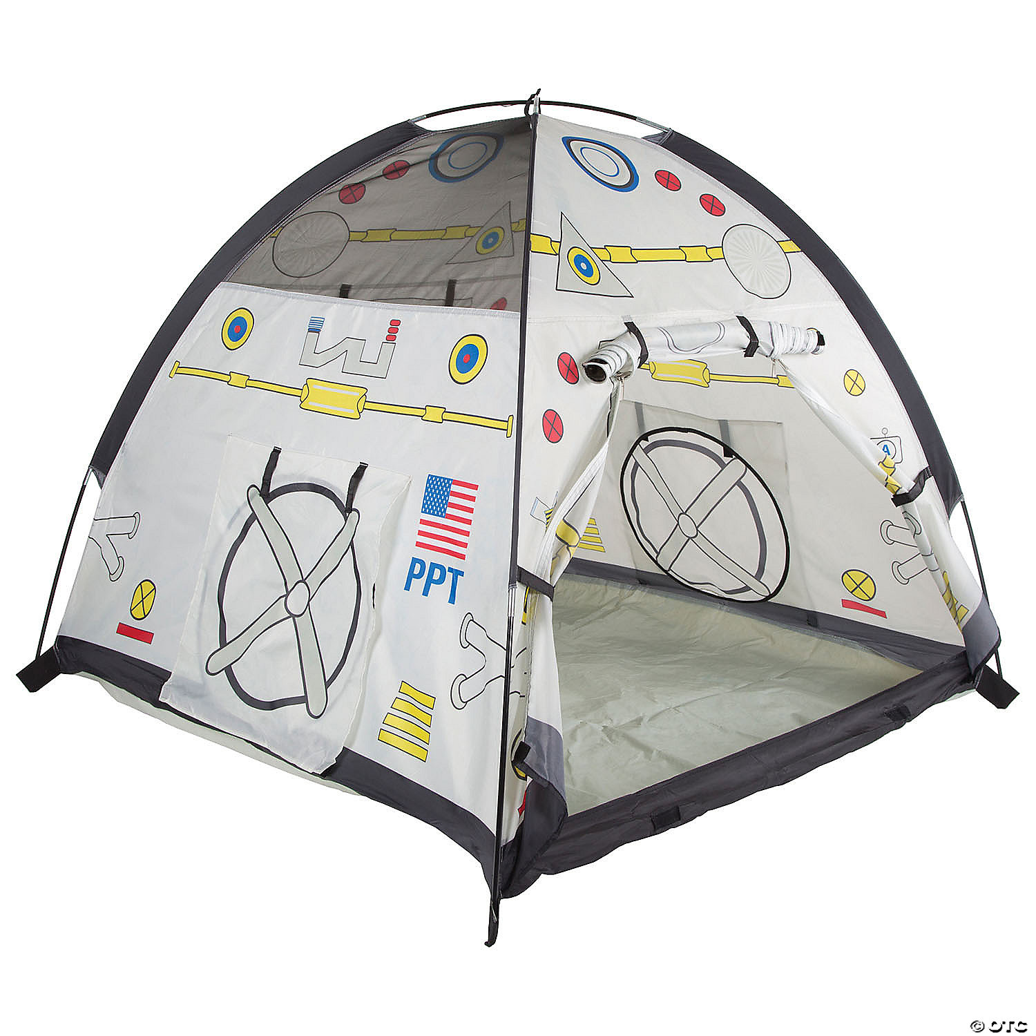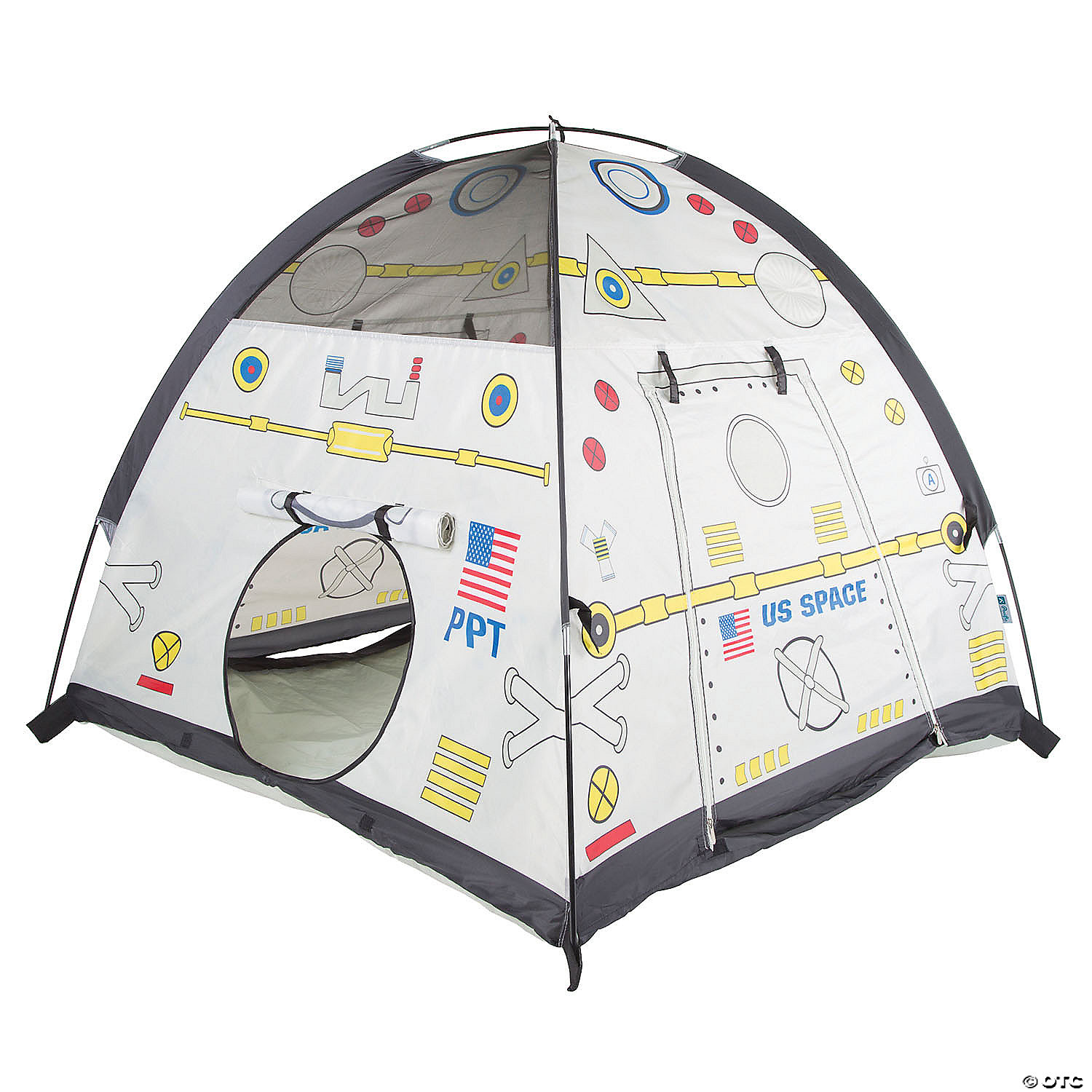 5, 4, 3, 2 1 Blast Off! Climb into your very own “Space Module” for interplanetary exploration. Comes complete with 2 roll up “hatch flaps” for secret access. You can “dock” with our “Space Dome and Lunar Tube” combination (item # 40210 sold separately) via the hatch as well. Exciting graphics make this a real life play experience. This “Space Module” has a roll up entry door for easy passage