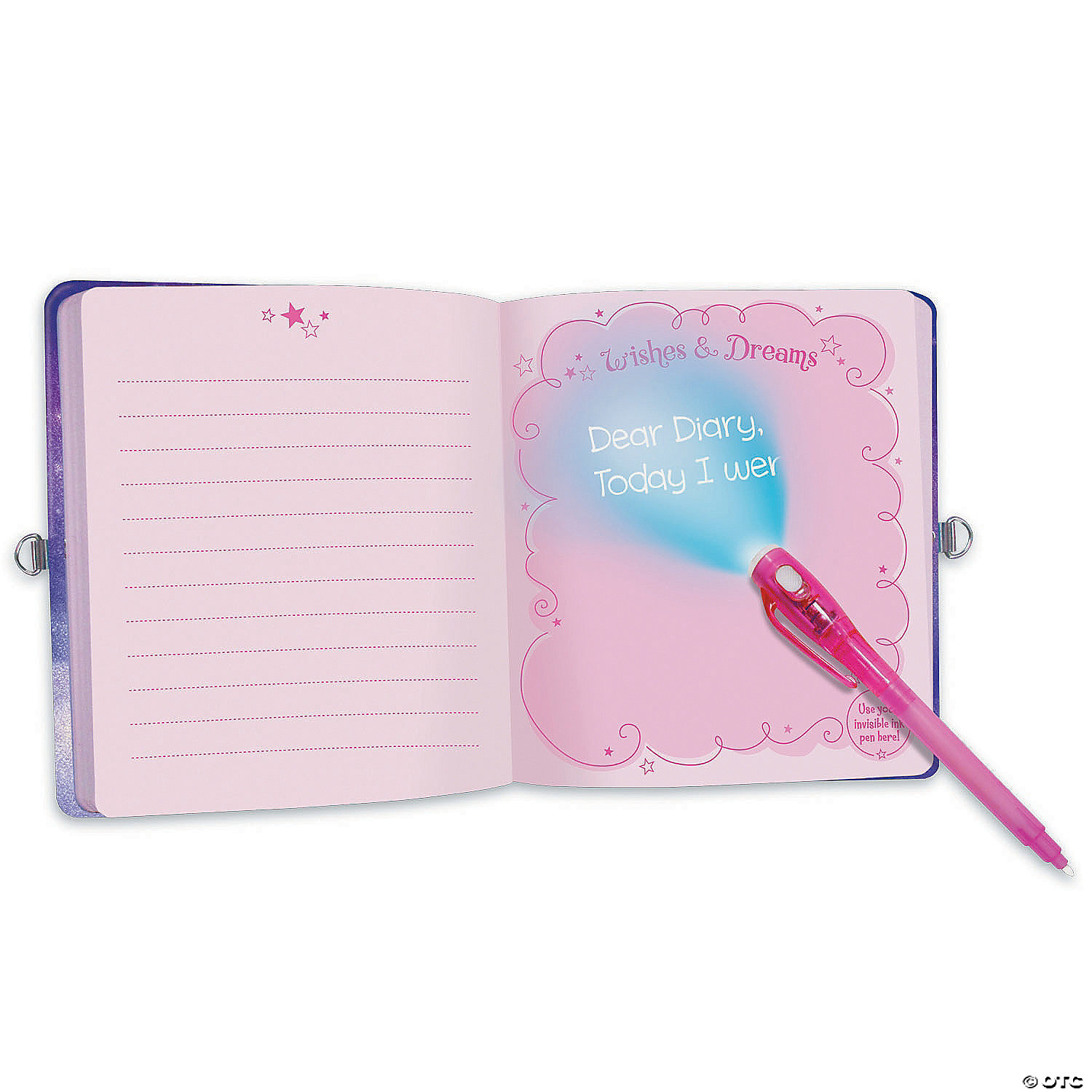 Carve out some time and space and grab your invisible ink pen! There are 216 pages just waiting to be filled with any hopes, dreams and thoughts you might have and want to protect with a “cloak” of invisibility!INCLUDES: 216 page lined book with special pages for invisible writing, lock, 2 keys and invisible ink pen.