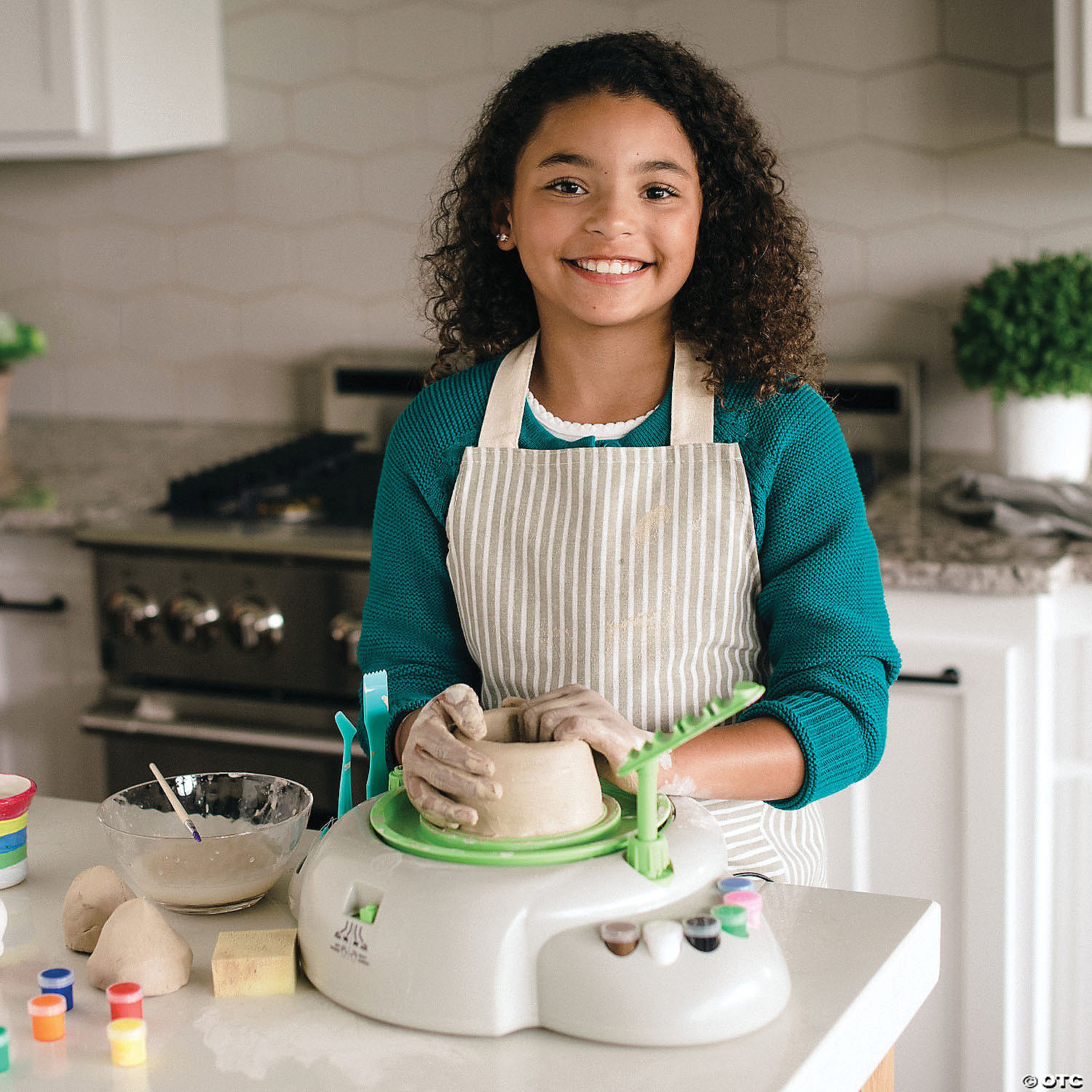 Make and decorate your own cups, bowls and other ceramic pieces! This set of 3 has everything aspiring artists need to get started with pottery, while engaging creative thinking and boosting motor skills and hand-eye coordination. Working with clay is also a great physical outlet to help children release emotions, reduce stress and improve sensory development. Break out this hands-on activity to help children of all skill levels engage in educational imaginative play!This kit includes:(1) The dual-direction, dual-speed Pottery Wheel, which includes an AC adapter to power the motor, 2 ½ pounds of pre-mixed air-dry clay, sculpting and cutting tools, 12 paints, paintbrush and sponge, splatter shield and guide book with artistic tips.(1) 5-pound pre-mixed Clay Refill is easy to work with and air-dries for a long-lasting, decorative piece that can be left natural or painted with a custom design. Includes step-by-step illustrated instructions for making coil and pinch pots.(1) FREE Gift only at MindWare: The Pottery Tool Kit is a great way for beginning artists to explore an interest in pottery and contains 1 hand wheel, 1 sponge, 1 rib, 2 molding tools, 1 ribbon tool, 2 stamps and instructions. A $20.95 value. • The strongest and most durable toy pottery wheel available for beginners• Encourages creativity and teaches real artistry skills• Comes with a total of 7.5 lbs. of air-dry clay.• Foot-pedal driven; AC adapter is includedAge Recommendation: Ages 7 and up