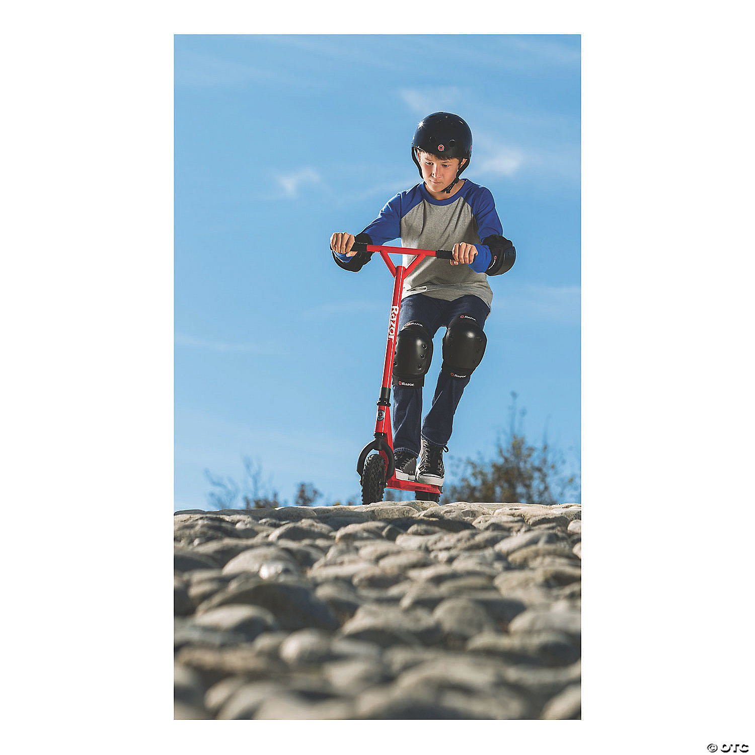 This RDS Red Razor Scooter is not restricted to riding on pavement, providing off-road adventures that are just as fun. It features a heavy-duty aluminum frame that can handle all kinds of terrain. With wheels and tires specially designed for dirt riding, this Razor kids’ scooter can be used on almost any terrain, and it will provide hours of outdoor fun for your child. Why restrict yourself to pavement when you can go on anywhere with the Razor RDS?• Age: 10+• Maximum Rider weight: 220 lbs.• Dimensions: 33″L x 19.5″W x 34″H• 100% aircraft-grade aluminum• Molded Nylon 6 (PA 6) hubs with 60 PSI, 200mm wheels and tires made specifically for tackling dirt• Some assembly required• Coarse full deck grip tape ensures no slick spots• Deck length: 20.75″• Deck width: 4.75″• Triple coffin clamp for unbeatable strengthSpecial Shipping Information: This item ships separately from other items in your order. This item cannot ship to a P.O. Box. This item may be subject to additional processing days. ITEM IS NOT ELIGIBLE FOR EXPEDITED SHIPPING
