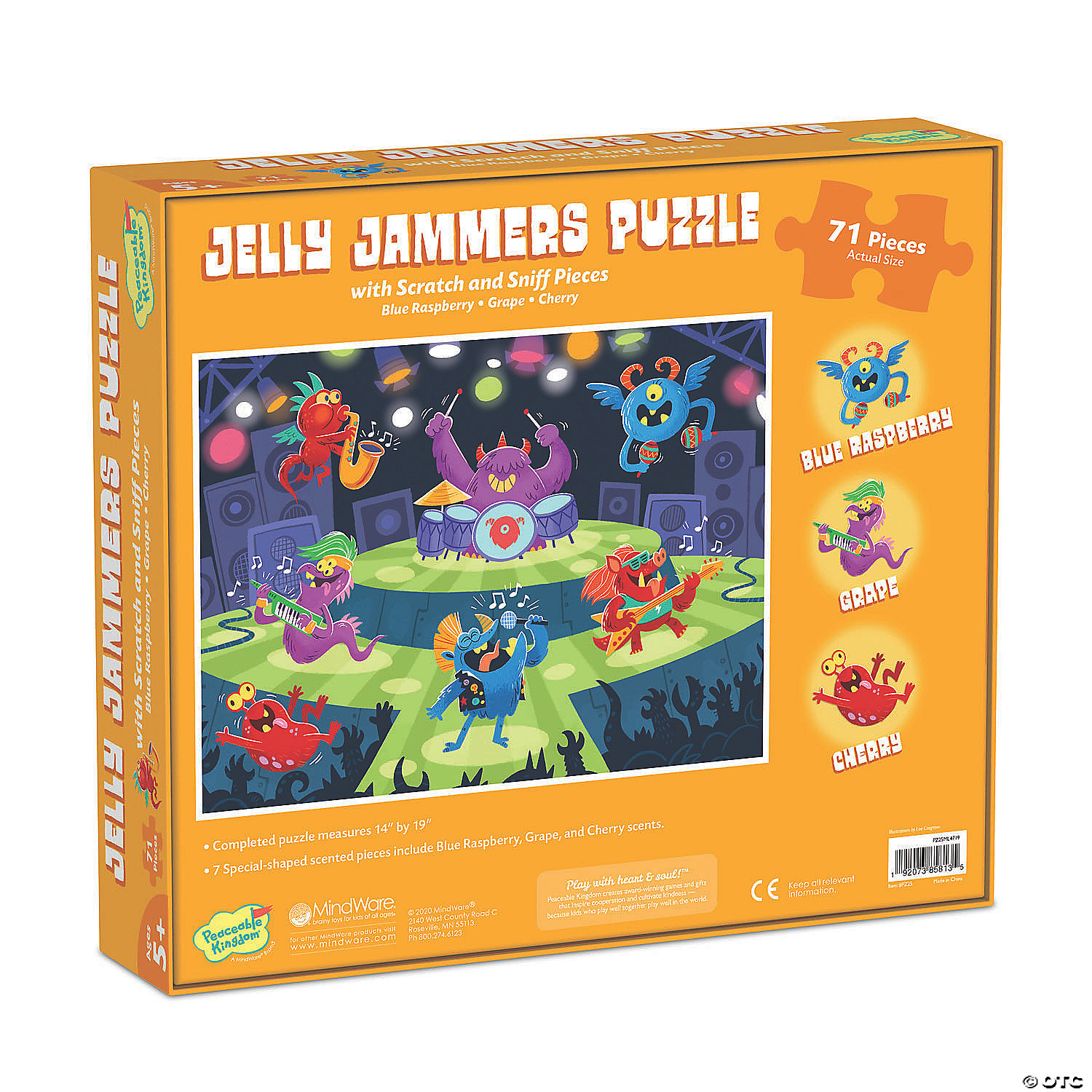 Experience multi-sensory fun with scratch and sniff puzzles! Engaging to put together, the silly final scene is a delight when the puzzle is complete. Create a rocking monster concert complete with a base drummer and a crowd-surfing fan, with pieces in blue raspberry, grape and cherry scents.• Put together a scratch and sniff scene with colorful pieces and sweet scents• Kids learn visual and scent recognition, fine-motor development, problem solving and critical thinking• 71 piece puzzle measures 14″ x 19″ when complete!• Enjoy other scratch-and-sniff puzzles: Jelly Sweet Smells Bakery or Fruity Pool Party• 7 Special-shaped scented pieces that include Blue Raspberry, Grape, and Cherry scents