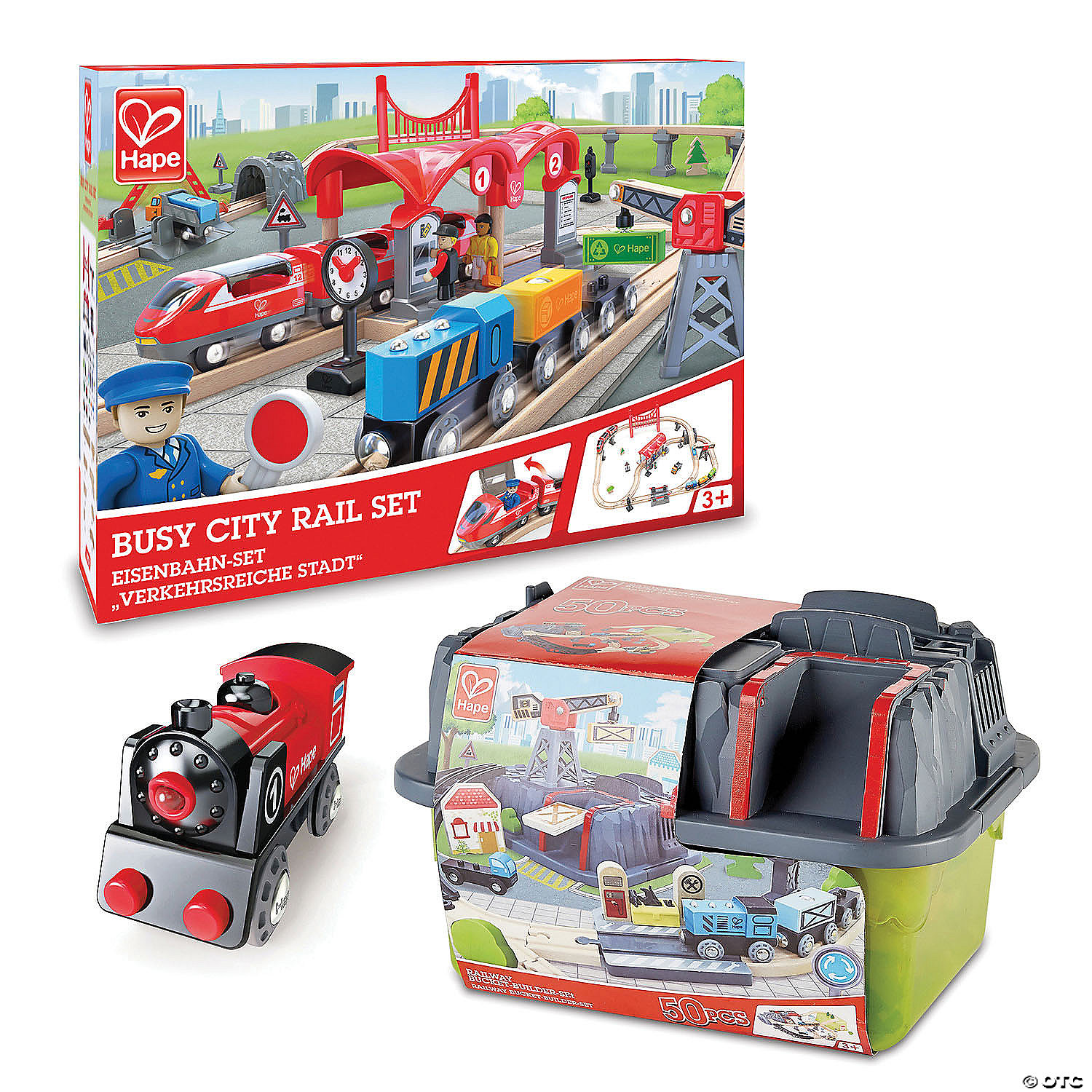 The mountain-shaped rail, passenger figures, working stop light and more unique accessories in this set will help kids create a working railway that they can build and play with time and time again. A fun combination of two rail sets that fit together seamlessly and a battery-powered train engine complete with a lamp to light its path, the Ultimate Rail Set is a classic toy that’s full of thoughtful details sure to delight children. You’ll be on the right track with this ultimate set for the train lovers in your life!Includes:Deluxe Railway Builder Train Set contains 1 free-wheeling locomotive, 2 carriages, 2 S-rails, 8 curved rails, 4 straight rails, 2 irregular rails, 1 mountain-shaped rail, pine trees, leafy trees, a storage box that doubles as a mountain pass and much more.Busy City Rail Set contains a train station, passenger and freight trains, a bridge, automatic gates, operational crane, 3 figurines, safety signs, working stop light, dump truck, and wooden railway tracks.• Ultimate Rail Set of 2 is an award-winning train rail set that will have kids all aboard for imaginative play!• Encourages imagination, problem solving, motor skills and creative play• Fun at home or in the classroom• Battery powered engine requires two AAA batteries, not includedOnly at MindWare, you’ll also receive a FREE Silly City Scratch-a-Laugh Poster valued at $15.95 Age Recommendation: Ages 3 years and up