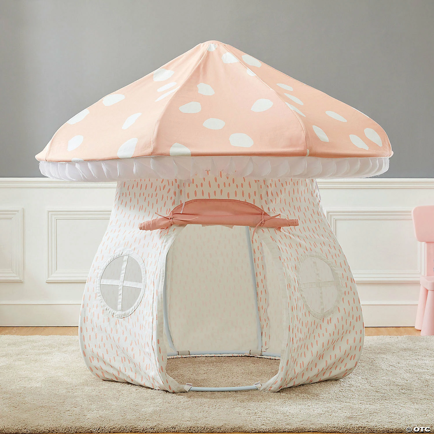 Measuring 61.5″ tall x 32.5″ diameter and constructed of a PVC frame and cotton cover, this mushroom-shaped playhouse makes a fun reading nook or sleepover tent. The mushroom shape and look helps to engage the imagination and bring woodland or forest pretend play to life! Children can unroll the door when they’re seeking a few minutes of quiet time or roll and secure it upright to welcome friends inside. Featuring soft, neutral colors, this playhouse fits well with most any playroom or bedroom color theme! • The Mushroom Playhouse makes a beautiful addition to playrooms or bedrooms• Encourages imagination, creativity and pretend play• Durable, long-lasting and easy to spot clean by wiping with a damp cloth• Create a more in-depth experience with the Mushroom Stool (sold separately)• Playhouse measures 32.5″ wide and stands 61.5″ tall when assembledAge Recommendation: Ages 3 and upThis item ships alone in its own packaging that may reveal its contents.