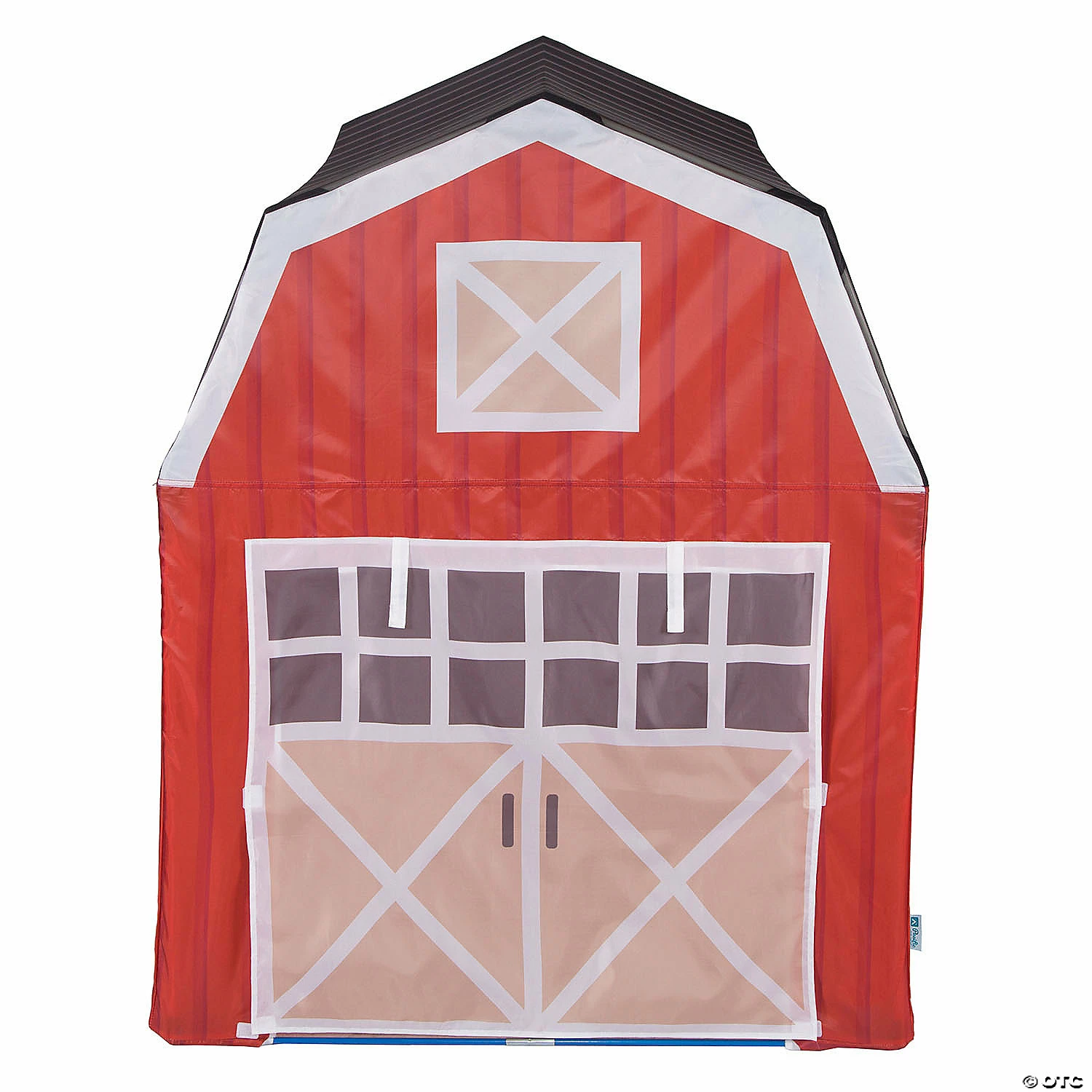 Cows and horses and pigs…oh my! Our Barnyard Playhouse is large enough to easily accommodate three or more of your child’s favorite farmyard friends as they tend to the barn. Featuring high-quality 190T Denier polyester taffeta and a realistic barn shape, this product is sure to hold up to countless hours of play! This playhouse is constructed of G3 fiberglass “super poles” that not only ensure safety and security, but are also color-coded for quick and simple set-up. Since safety is of the utmost importance at the barn, this playhouse comes with radius cut hook and loop fasteners to prevent cuts and scrapes. Your little rancher will enjoy adventures galore in the barn as the No-See-Um mesh keeps the farm animals in and the pesky bugs out. No need to “hold your horses,” the perfect barn is here! Measures 48″ x 38″ x 48″. Includes sturdy carry bag for travel or storage.