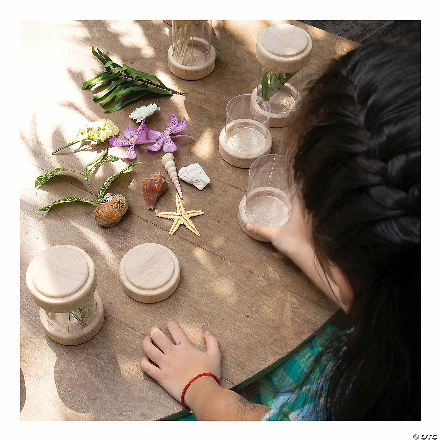 What makes a fun noise when you shake it? Find trinkets, natural materials and sensory objects to collect in the beautiful, stackable Treasure Tubes. The round, transparent acrylic tubes with removable covers hold small objects to observe, display or rattle. Ideal for color and sound exploration and light table activities. Holds marbles, beads, twigs, leaves, small toys and more. Stack the tubes on top of each other to customize play experience. Easy-to-remove wooden top keep objects securely in place until ready to be replaced. Set of 8. Largest Tube measures: 3″Dia. x 5.75″H. Smallest Tube measures: 3″Dia. x 3.5″H. Ages 3+. Special Shipping Information: This item ships separately from other items in your order. This item cannot ship to a P.O. Box. This item may be subject to additional processing days. ITEM IS NOT ELIGIBLE FOR EXPEDITED SHIPPING